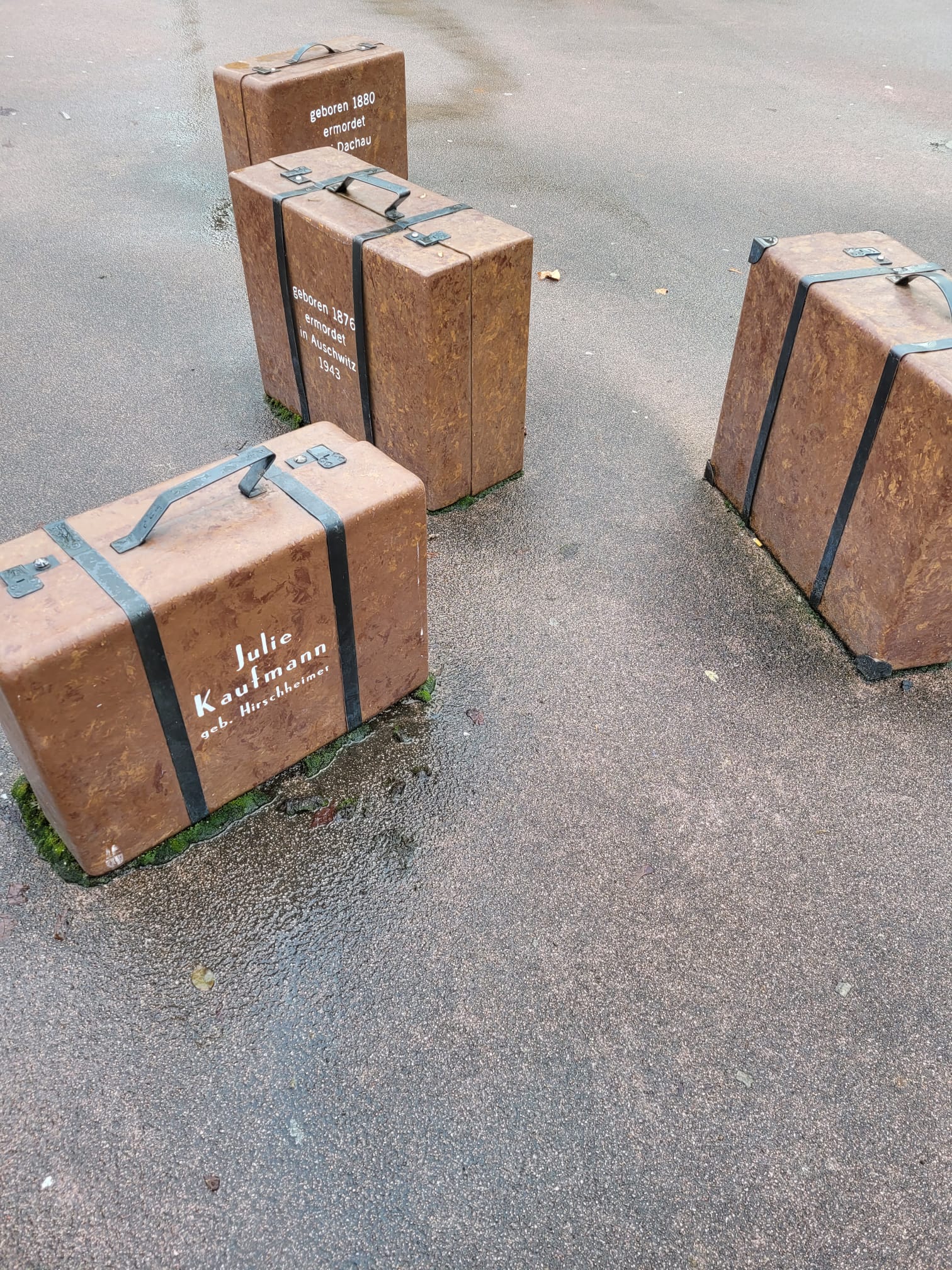 Die blank polierten Stolpersteine, inzwischen 99, fallen oft gar nicht auf, erst beim genauen nach unten schauen kann man die Namen und Daten lesen, es sind nicht nur jüdische Familien, die plötzlich aus dem städtischen Leben verschwanden.